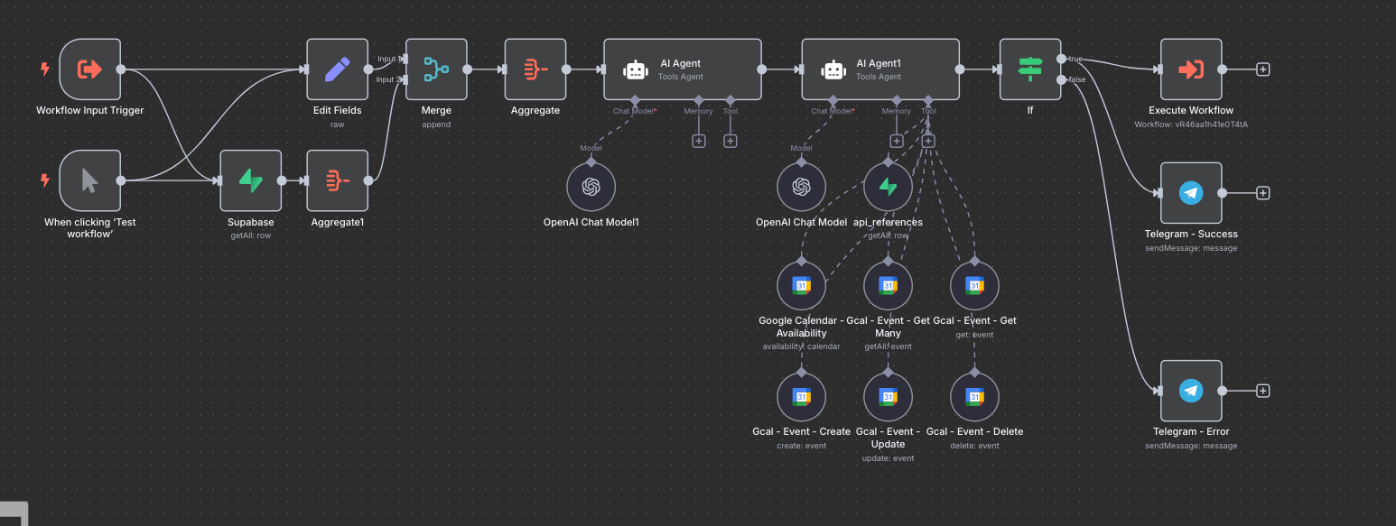 If available, n8n creates the event with the full details, reminders, and client information.